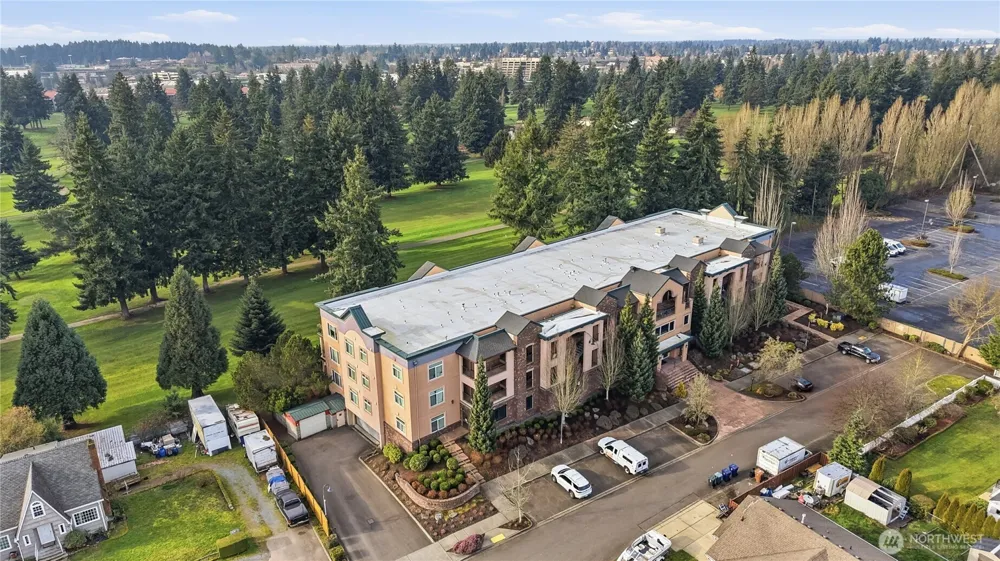Top-Floor Penthouse Vibes with Mt. Rainier & Golf Course Views! Experience sophisticated urban luxury in this newly remodeled, top-floor condo overlooking the lush Allenmore Golf Course. This light-filled sanctuary features huge picture windows showcasing sweeping fairway views and a stunning Mt. Rainier backdrop. Step inside to discover gorgeous wide-plank hardwood floors with radiant heating throughout—cozy, modern, and elegant. The chef’s kitchen sparkles with granite slab counters and stainless steel appliances, opening to a spacious living area perfect for entertaining. The floor plan is brilliantly designed with a private primary suite and a versatile Flex Room featuring a built-in Murphy bed—ideal for a Work-From-Home office or guest quarters. Both bathrooms have been luxuriously updated with sleek quartz countertops and designer finishes. Enjoy the ultimate convenience of Step-Free Living: Secure garage parking (2 assigned spaces + storage) leads directly to the elevator and your front door. Building amenities include a secure lobby and fitness center. Prime location for professionals: minutes to local hospitals, colleges, and quick freeway access for an easy commute. Move-in ready luxury awaits!